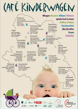 Gemeinsam einige schöne Stunden genießen, vielleicht einen Kaffee trinken, andere Eltern kennenlernen, einfach mal rauskommen aus dem Alltag – dafür haben sich im Kreis Warendorf Hebammen, Kindertageseinrichtungen, Familienzentren und viele weitere Fachkräfte zusammengetan um gemeinsam mit dem Angebot „Café Kinderwagen“ für Sie da zu sein.