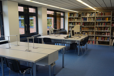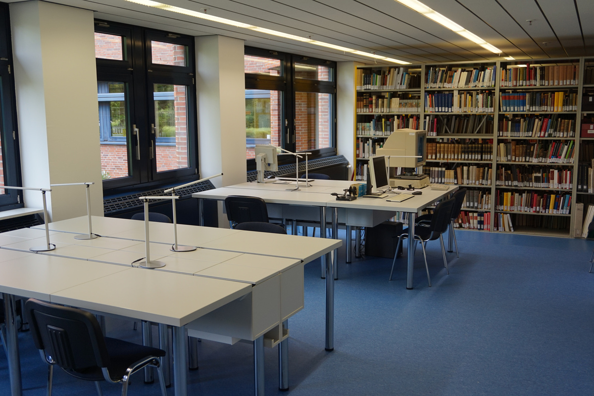 Der Lesesaal befindet sich im Erdgeschoss des Kreishauses (Raum C0.101).