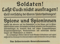 Plakate mit Warnungen wie „Vorsicht bei Gesprächen“ und Aufrufe wie „Soldaten! Laßt Euch nicht ausfragen!“ beförderten einerseits diffuse Ängste vor „dem Feind“.