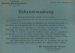 Der Mangel an Gummi bzw. an dem zur Herstellung benötigten Kautschuk war Anlass, das Fahrradfahren zu verbieten: Das Gummi der Fahrrad- und Kraftfahrzeugreifen wurde in anderen kriegswichtigen Bereichen benötigt.