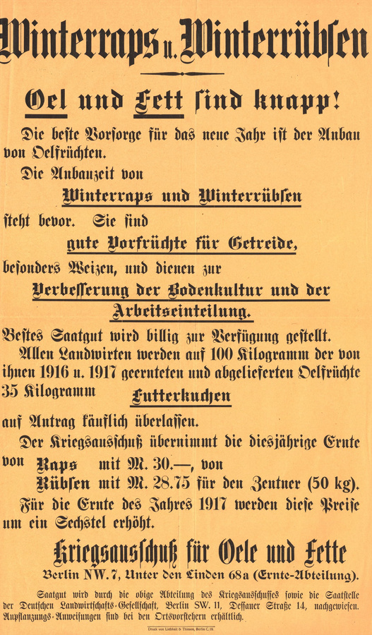 Die Missernte von 1916 führte im folgenden Winter zur schwersten Hungerzeit des 1. Weltkriegs: Im so genannten „Steckrübenwinter“ 1916/17 sank der durchschnittliche Kalorienverbrauch unter 1000 Kalorien pro Tagesration.