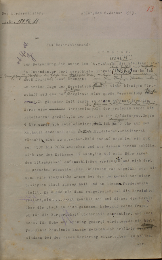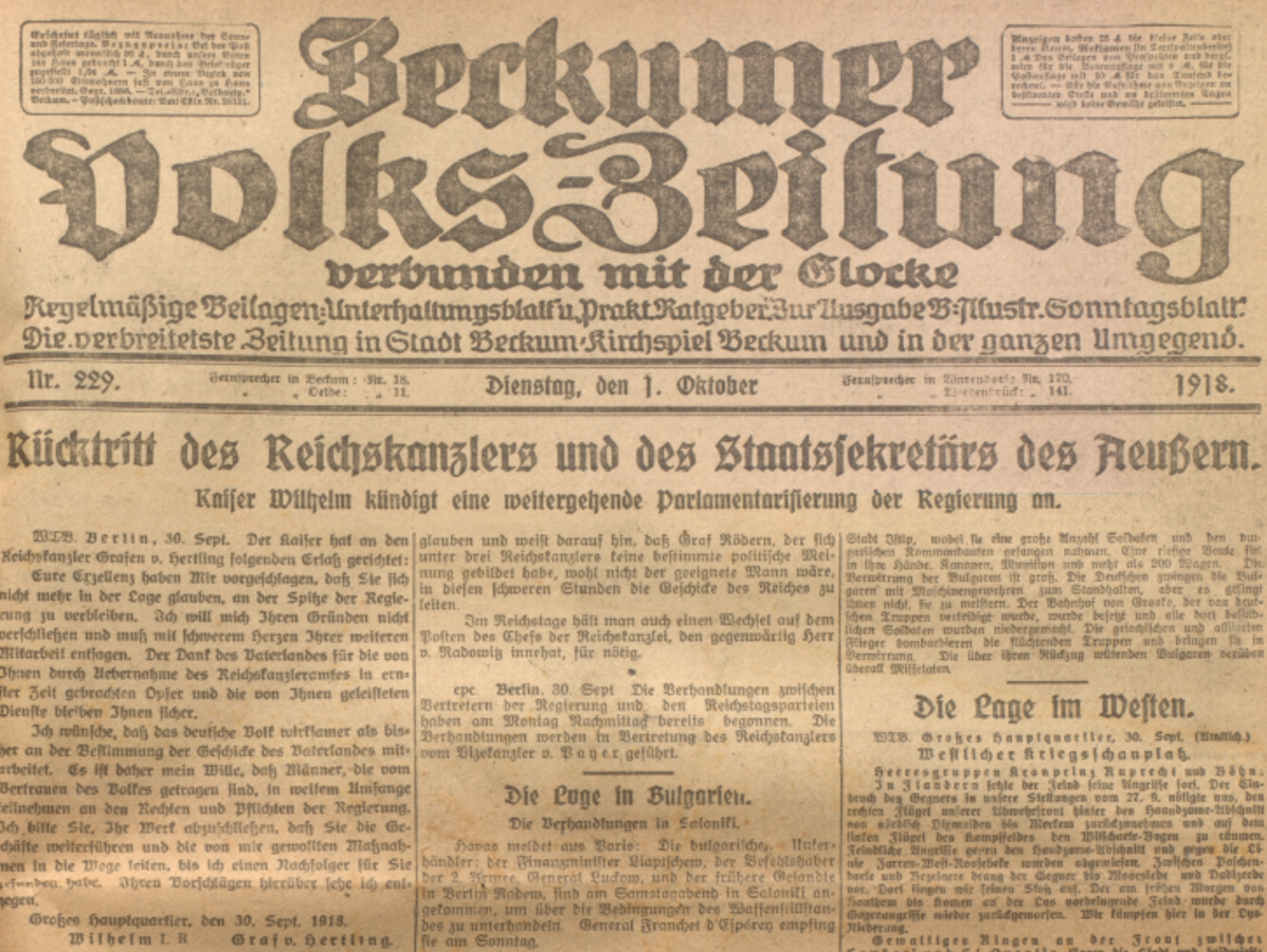 In den folgenden Wochen entstehen nicht nur in den Großstädten, sondern auch in den Kreisen Beckum und Warendorf sog. Arbeiter- und Soldatenräte.