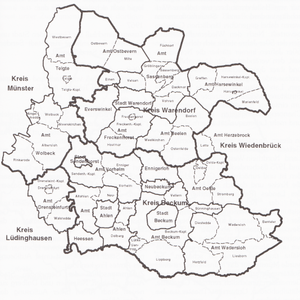In der zweiten Phase wird von 1972 bis 1975 die Neuordnung auf Ebene der Kreise vollzogen. Im östlichen Münsterland werden die Kreise Beckum, Warendorf und Teile der ehemaligen Kreise Münster und Lüdinghausen zum Großkreis Warendorf zusammengeschlossen.
