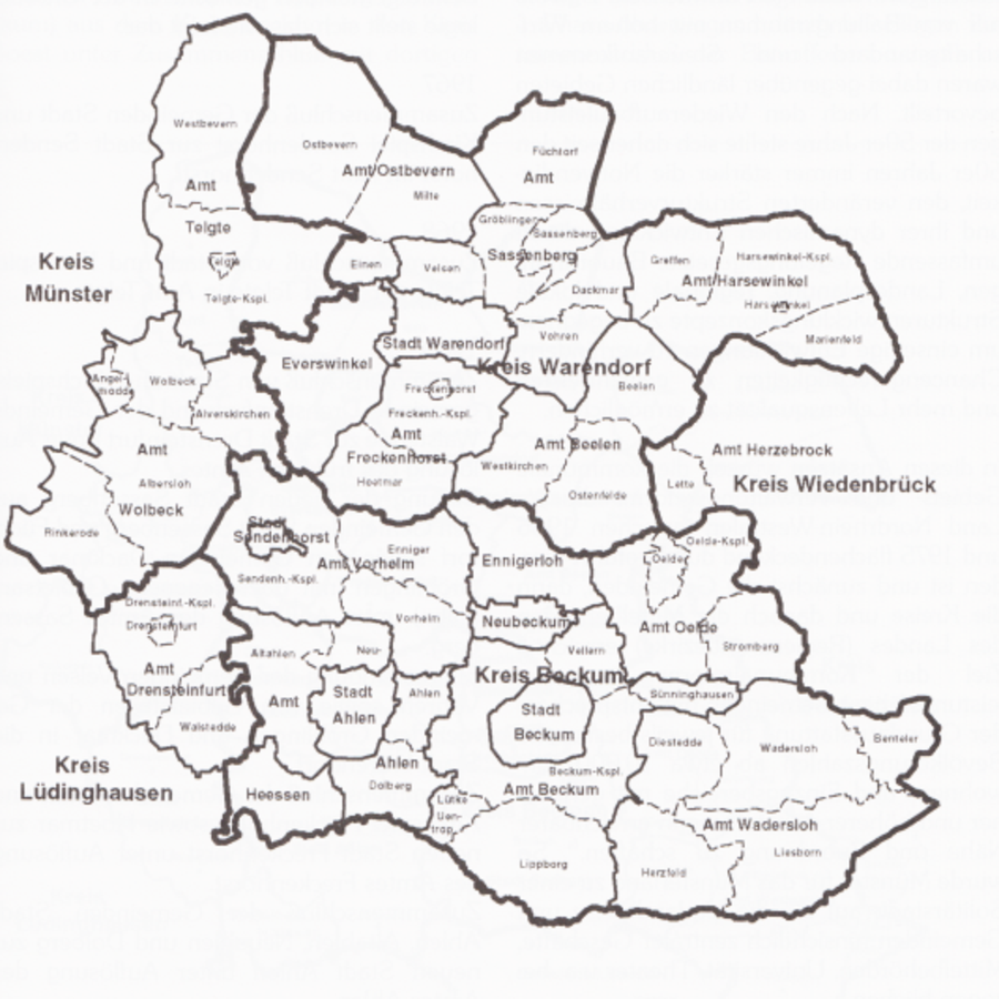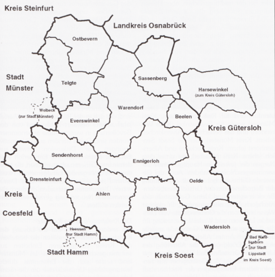 Schon in dieser Phase ergeben sich bereits „Härtefälle“, wie die Aufgabe der Selbstständigkeit des Kirchdorfs Füchtorf oder das Ausscheiden der Gemeinden Herzfeld und Lippborg aus dem Kreis Beckum zeigen.