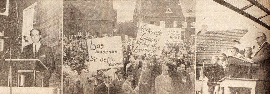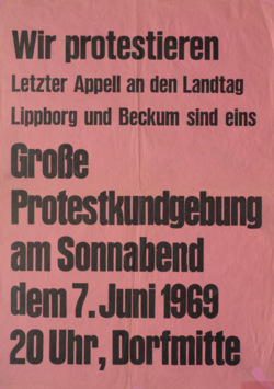 Auf verschiedenen Kundgebungen zwischen 1968 und 1969 protestieren mehr als 1000 Einwohner der Gemeinde Lippborg gegen den Anschluss an die Stadt Lippstadt und für einen Verbleib im Kreis Beckum.
