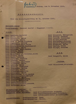 In Anlehnung an die am 1. April 1946 von der alliierten Militärregierung erlassene „Revidierte Deutsche Gemeindeordnung“ wird der Kreistag oberstes Verfassungsorgan, der von den Bürgern gewählt wird. Der Kreistag wählt den Landrat, den Vorsitzenden des Kreistags.