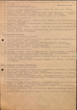 Im September 1947 werden die Flüchtlingsausschüsse neu organisiert. Die Ausschüsse sollen nun aus von den Flüchtlingen gewählten und von den Behörden ernannten Vertretern bestehen und es soll ein Mitspracherecht der Flüchtlinge auf allen Verwaltungsstufen verwirklicht werden.