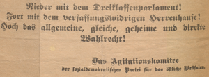 Mit dem schrittweisen Anwachsen der sozialdemokratischen Bewegung werden auch die Stimmen lauter, die sich gegen das undemokratische und ungerechte Dreiklassenwahlrecht wandten. Immerhin hat der Preußische Landtag u.a. über den enormen Haushalt des Königreichs zu entscheiden.