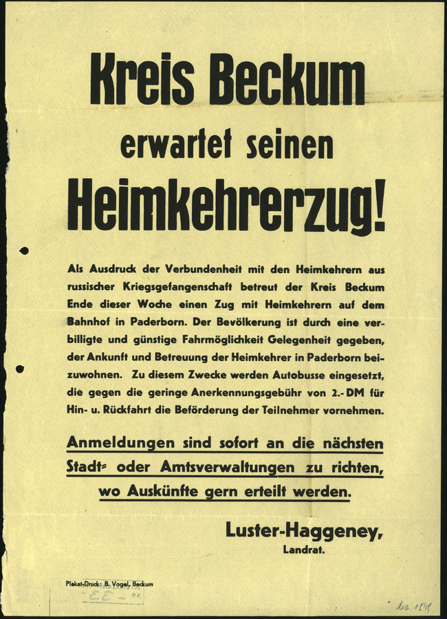 Nicht nur die Menschen des östlichen Münsterlandes, auch die britische Militärregierung wandten sich an die Kreise. Unter der Aufsicht der neuen Machthaber sicherten die beiden Kreise die Versorgung der Bevölkerung mit dem Überlebensnotwendigen, die Wiedereingliederung rückkehrender Kriegsgefangener sowie die Unterbringung und Integration der Flüchtlinge und Vertriebenen.