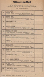 Rechts sehen Sie einen Stimmzettel für die Kreistagswahl im Kreis Warendorf am 13. Oktober 1946. Mit 29 Mandaten erhielt die CDU 75 % der Sitze.
