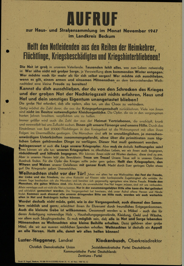 Am 13. Oktober 1946 fanden erstmals nach dem Ende des Zweiten Weltkrieges auch in den Kreisen Warendorf und Beckum freie, demokratische Wahlen statt.