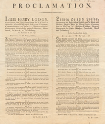1806 werden die Länder Mark, Münster, Osnabrück und Tecklenburg im Namen des französischen Kaisers Napoleon Bonaparte in einer zweisprachigen Proklamation (links) für erobert erklärt. Sämtliche Beamte des „Generalgouvernements“ wurden auf Napoleon vereidigt.