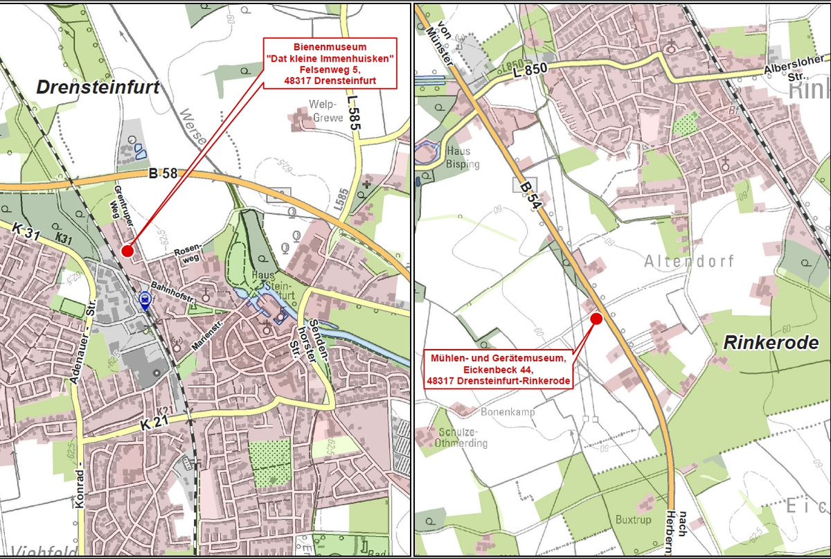 Zwei kleine sehenswerte Museen in Drensteinfurt lassen sich ideal im Rahmen einer Radtour mit der Familie kombinieren. Das Bienenmuseum „Dat kleine Immenhuisken“ und das Mühlen- und Gerätemuseum im Ortsteil Rinkerode laden Jung und Alt zu einem Besuch ein.