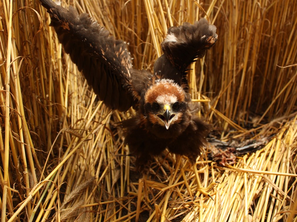Bestandskartierungen, Nestsuche und Nestschutz sind wichtige Bestandteile des kreisweiten Rohrweihenschutzes. Neben der Beobachtung des Verhaltens der Alttiere und der direkten Nestsuche können potentielle Niststandorte auch mit einem sogenannten Multikopter (mit eingebauter Kamera) überflogen werden. Die Befliegung stellt eine relativ störungsarme Möglichkeit dar, den genauen Neststandort im Getreidefeld zu lokalisieren, ohne die Fläche betreten zu müssen und mögliche Fährten für Beutegreifer zu legen.