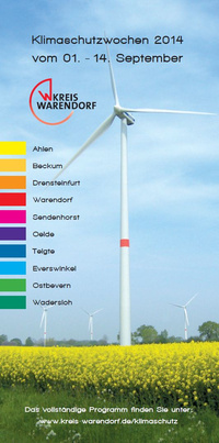 Vom 04. bis 12. Juni 2016 findet zum zweiten Mal, nach der Premiere in 2014, eine Klimaschutzwoche im Kreis Warendorf statt. Der Kreis und die Kommunen haben dafür gemeinsam ein Programm aufgestellt. Unterstützt wurden Sie dabei tatkräftig von Institutionen, Vereinen und Unternehmen, die Programmpunkte (mit-) gestalten.