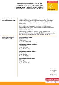Anmeldung: über die Energie-Hotline der Verbraucherzentrale 0211 / 33 996 555 (Mo - Fr: 9:00 - 17:00 Uhr) oder beim Kreis Warendorf unter 02581 - 531314 bzw. energieberatung@kreis-warendorf.de